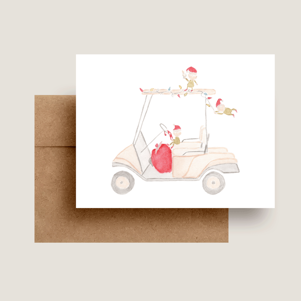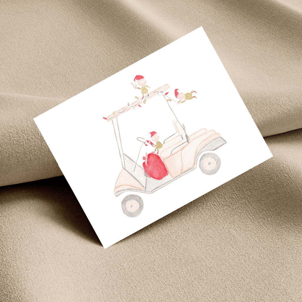 Watercolor Mischievous Elves Golf Cart Note Cards